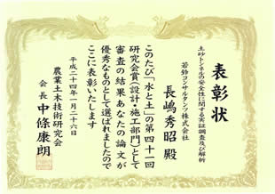 平成22年度 東北農政局所管農業農村整備事業等優良工事等の請負者等の表彰におきまして地域貢献活動に対して表彰状を拝受致しました。