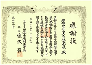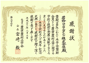 このたび(社)農業農村工学会より継続教育機構10周年の感謝状を拝受致しました。